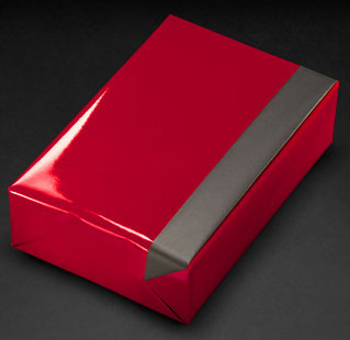 Papier: braun Kraft, gerippt (sealing), 60g/m², einseitig bedruckt, Farbe: rot